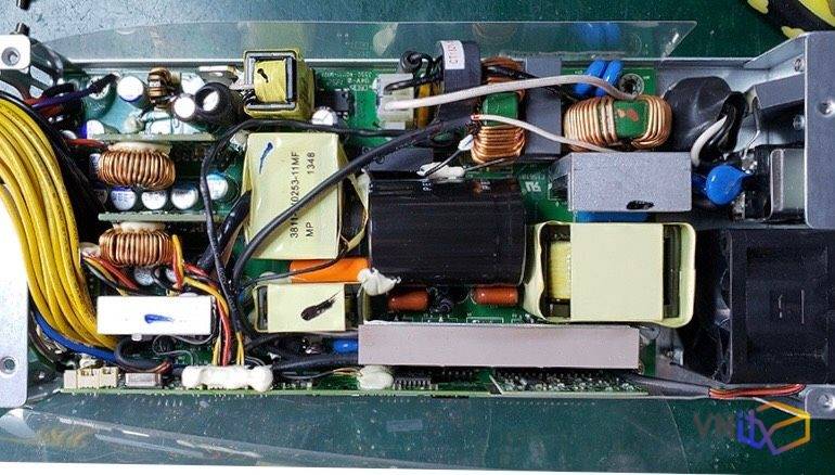 Linh kiện bên trong khá đơn giản, Với giá chỉ khoảng 850-900k cho 1 nguồn flex 1u 480w 80 plus thì chắc hẳn không thể không cắt giảm chất lượng linh kiện để tối ưu giá.